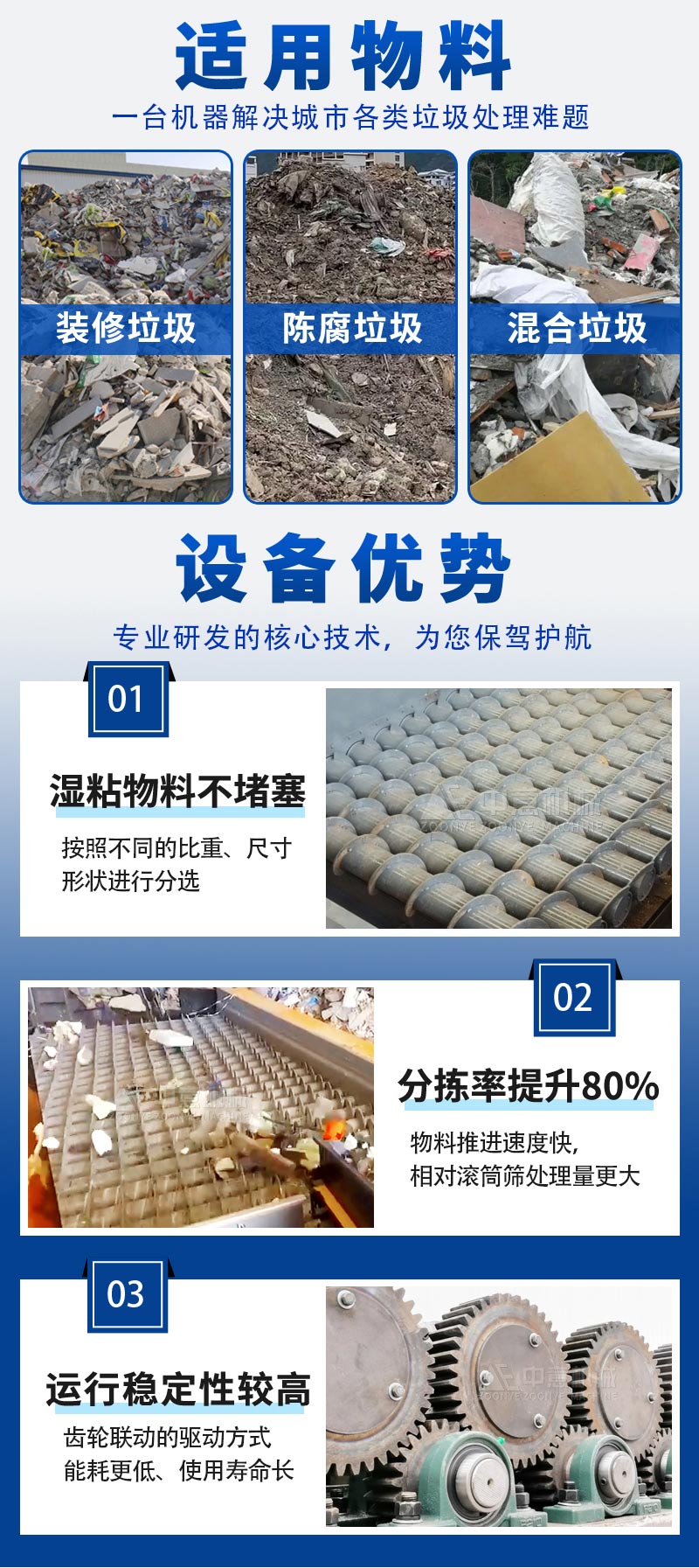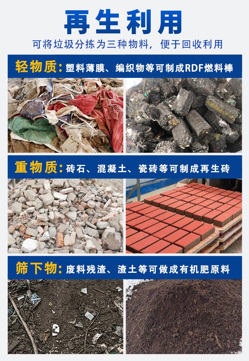 適用物料:裝修垃圾、陳腐垃圾、填埋垃圾、混合生活垃圾、大件垃圾分選...