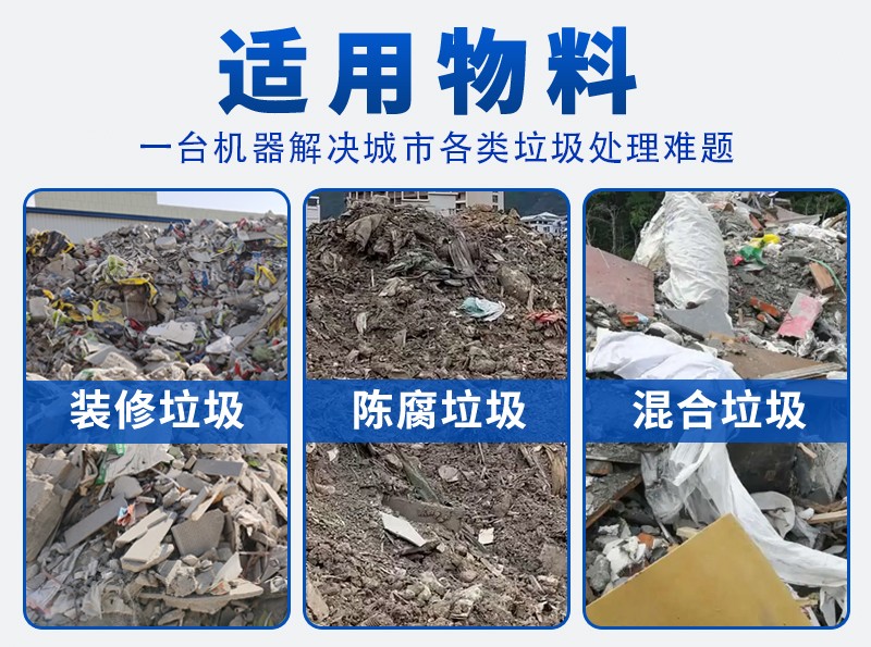 適用物料:裝修垃圾、陳腐垃圾、填埋垃圾、混合生活垃圾、大件垃圾分選...